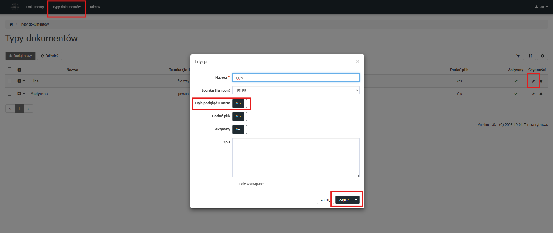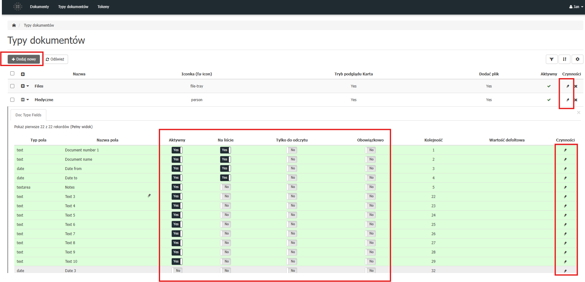 Go to: Settings → My Document Types. Choose Add or edit an existing type. In the edit window, you can: