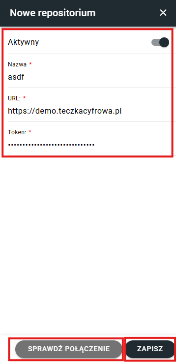To connect to a remote repository, you need a link and a token (provided by the administrator or institution).