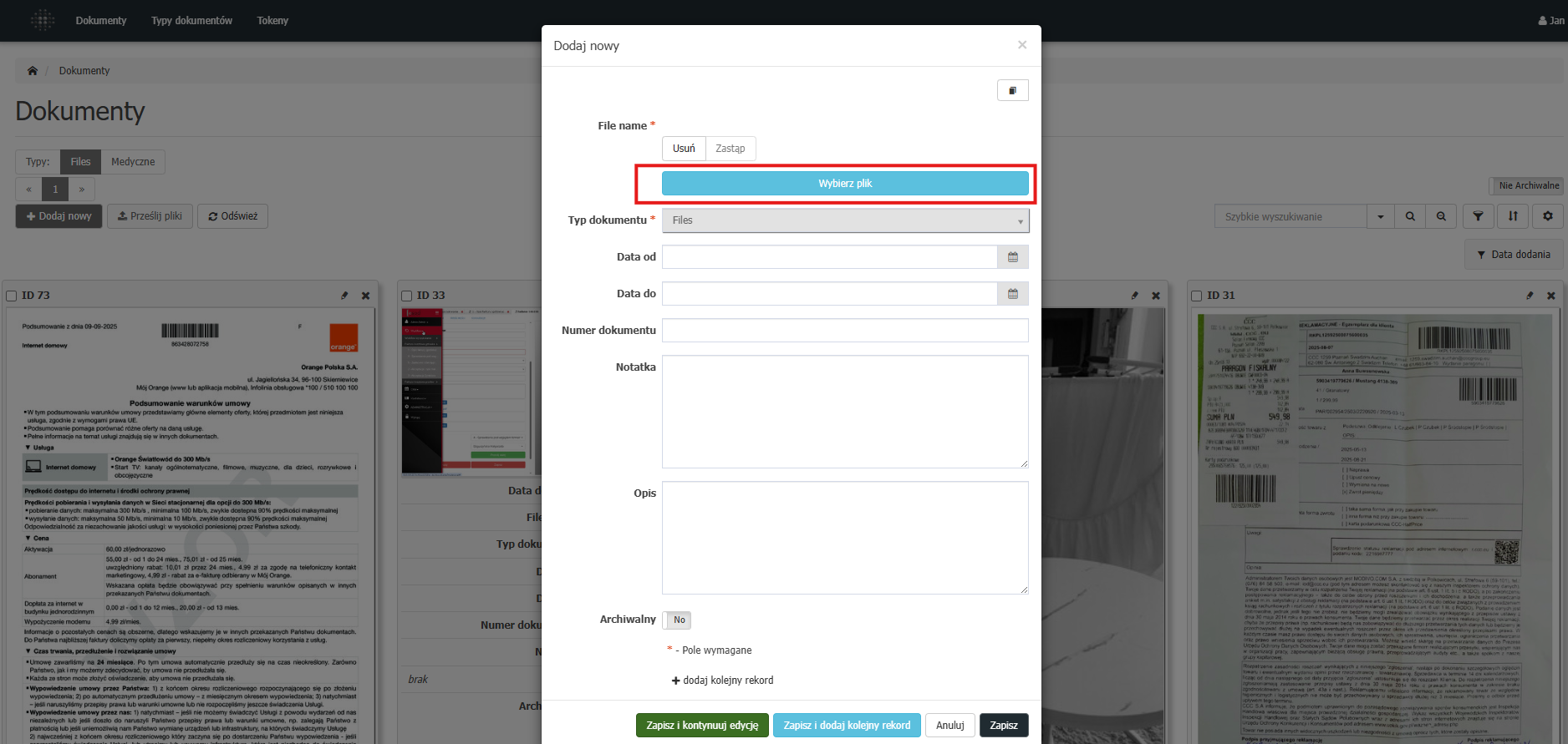 - Wybierz z menu typ dokumentu, do którego chcesz dodać plik.