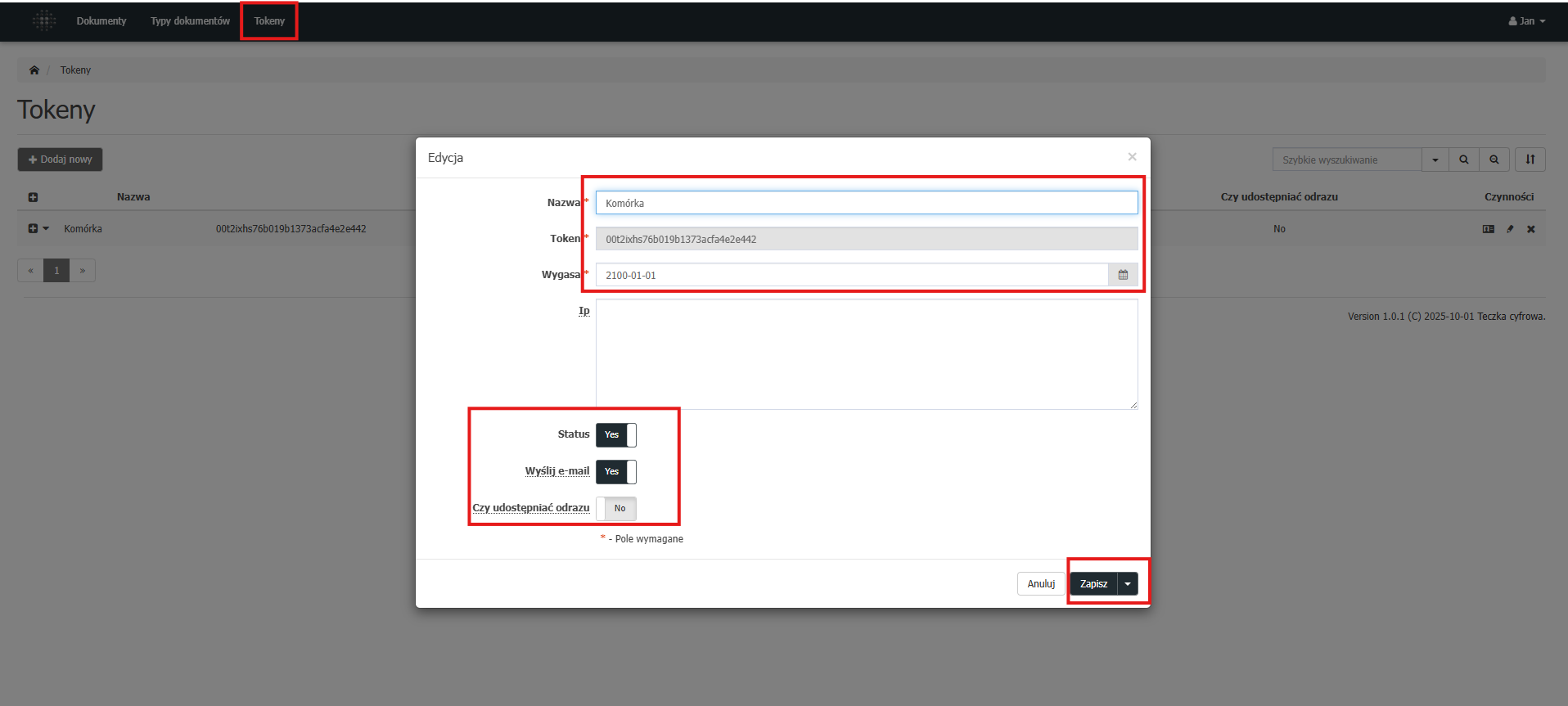 Przejdź do: Ustawienia → Moje typy dokumentów. Wybierz Dodaj albo edytuj istniejący typ. W oknie edycji możesz: