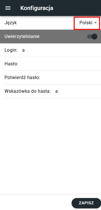 Uwaga: hasło należy zapamiętać — nie ma możliwości odzyskania.
